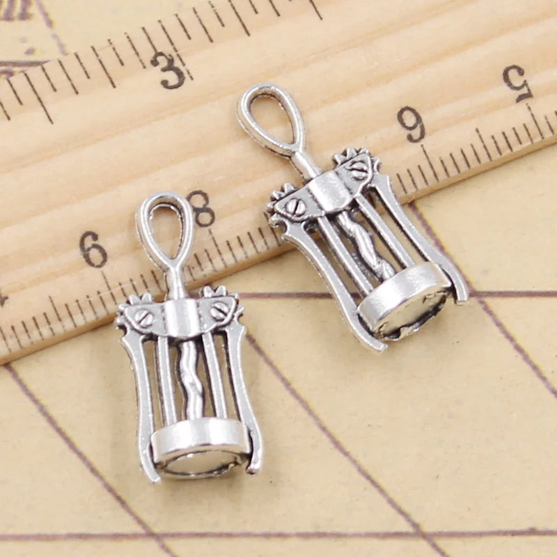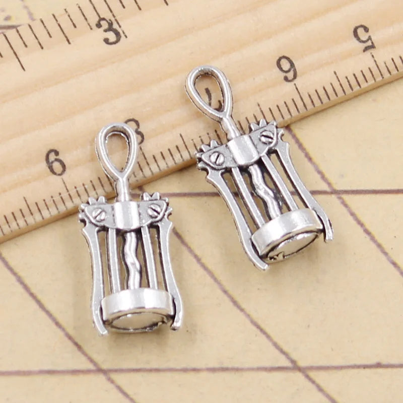 10 Uds. De dijes abridor de vino de uva, 27x12x7mm, colgantes de Color plata antigua, fabricación artesanal, joyería tibetana hecha a mano