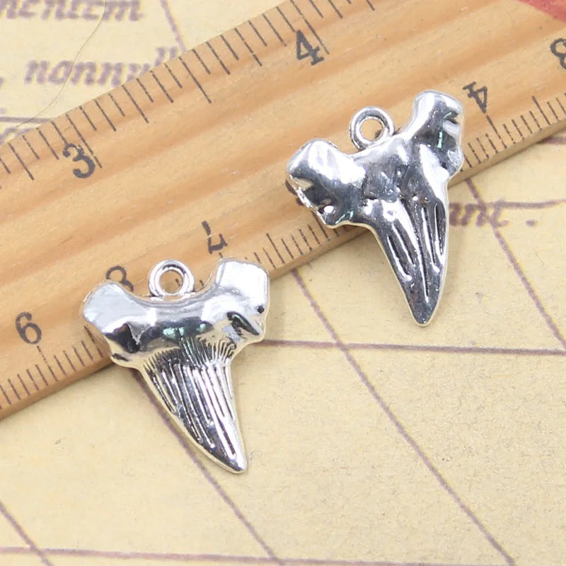 10 Uds. De dijes con dientes de tiburón, 22x18x6mm, colgantes de Color plata antigua, fabricación de joyería tibetana hecha a mano DIY