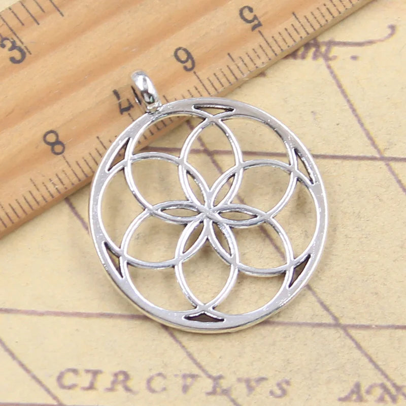 10 Uds. De dijes Datura stramonium Yoga Life Flower 35x30mm colgantes de Color plata antigua para hacer hallazgo tibetano hecho a mano DIY