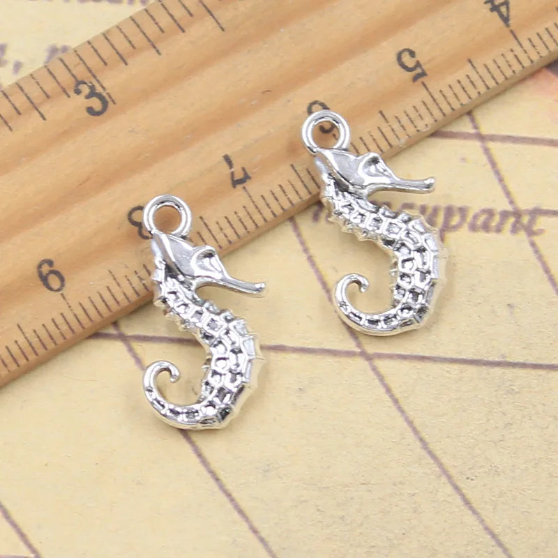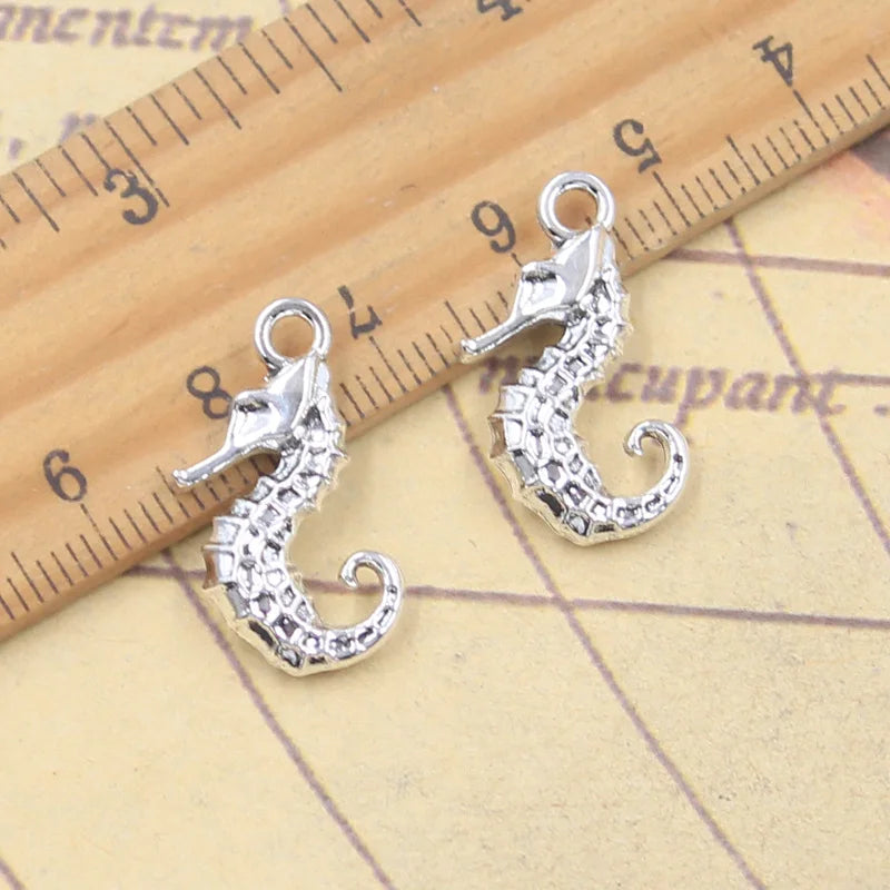 10 Uds. De dijes de caballito de mar, hipocampo de océano, 22x15mm, colgantes de Color plata antigua, fabricación de joyería tibetana hecha a mano DIY