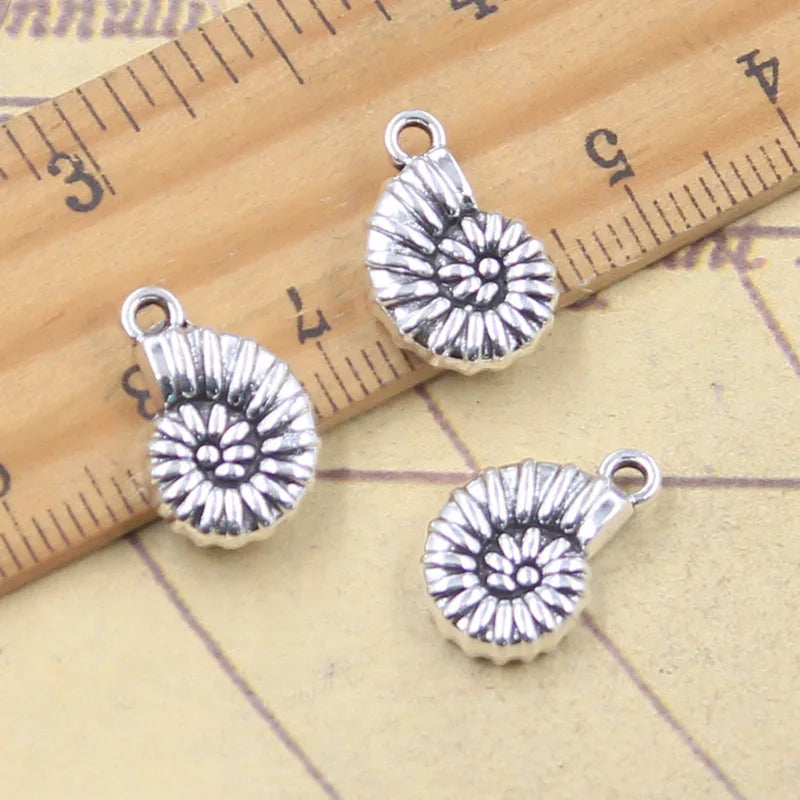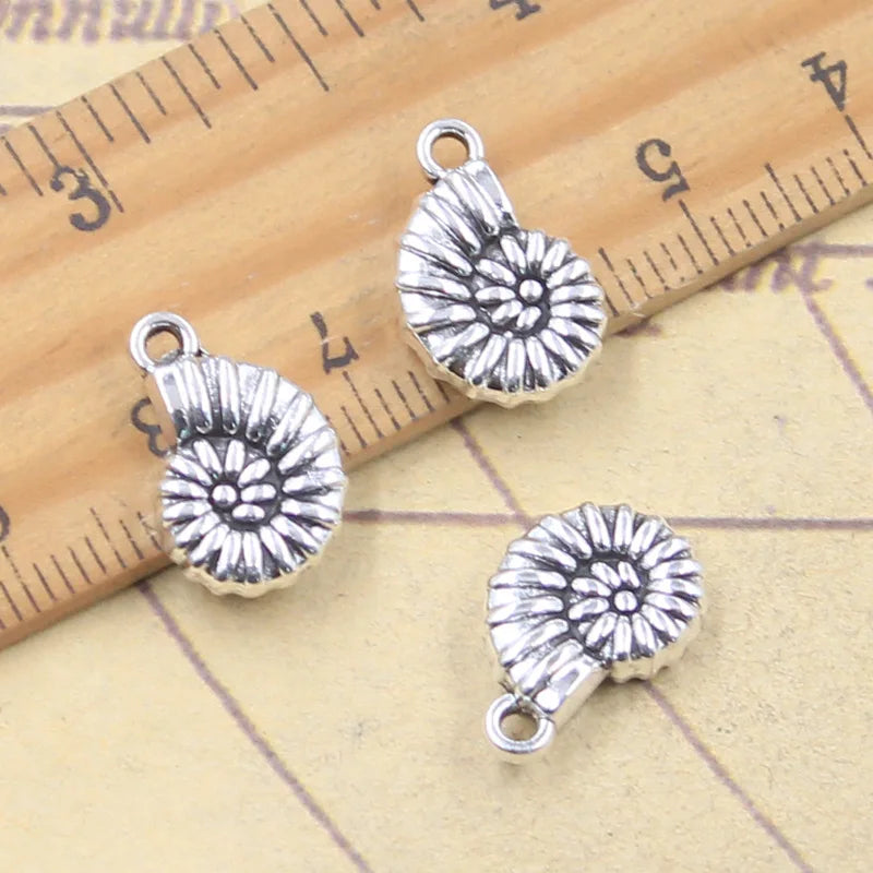 10 Uds. De dijes de caracola de mar, 16x11x4mm, colgantes de Color plata antigua, fabricación de joyería tibetana hecha a mano DIY