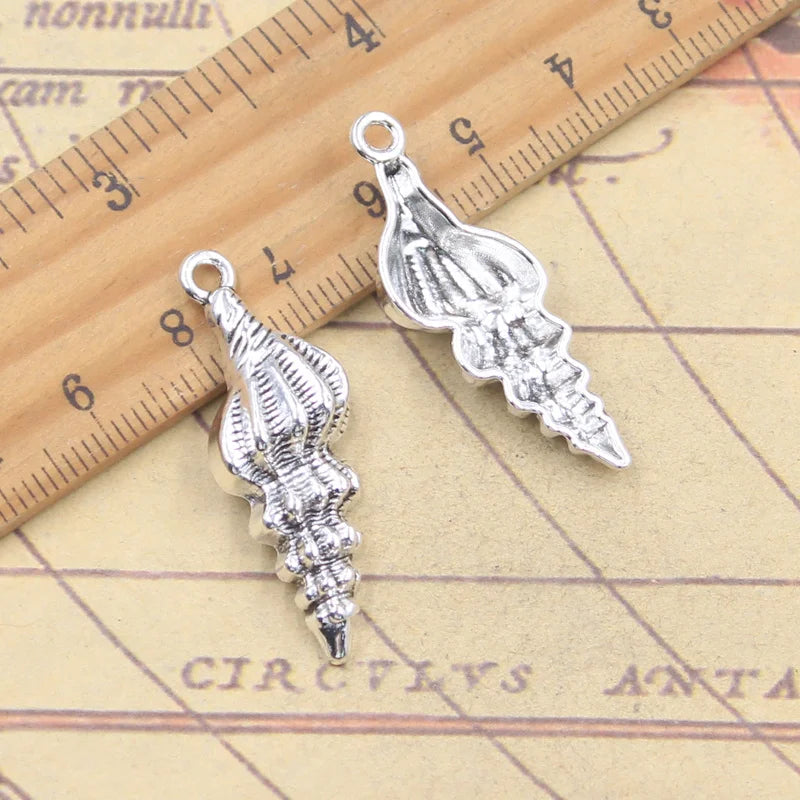 10 Uds. De dijes de concha de vieira, 37x14x7mm, colgantes de Color plata antigua, fabricación de joyería tibetana hecha a mano DIY