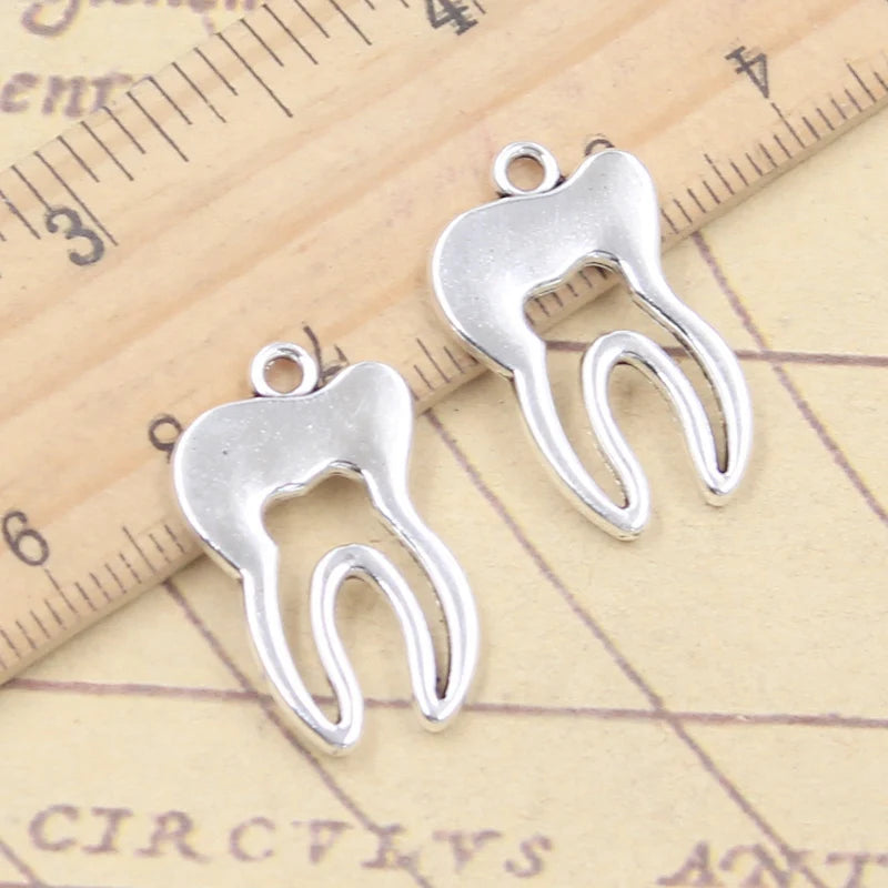10 Uds. De dijes de dientes de 24x15mm, colgantes de Color plata tibetana, fabricación de joyería antigua, artesanía hecha a mano DIY