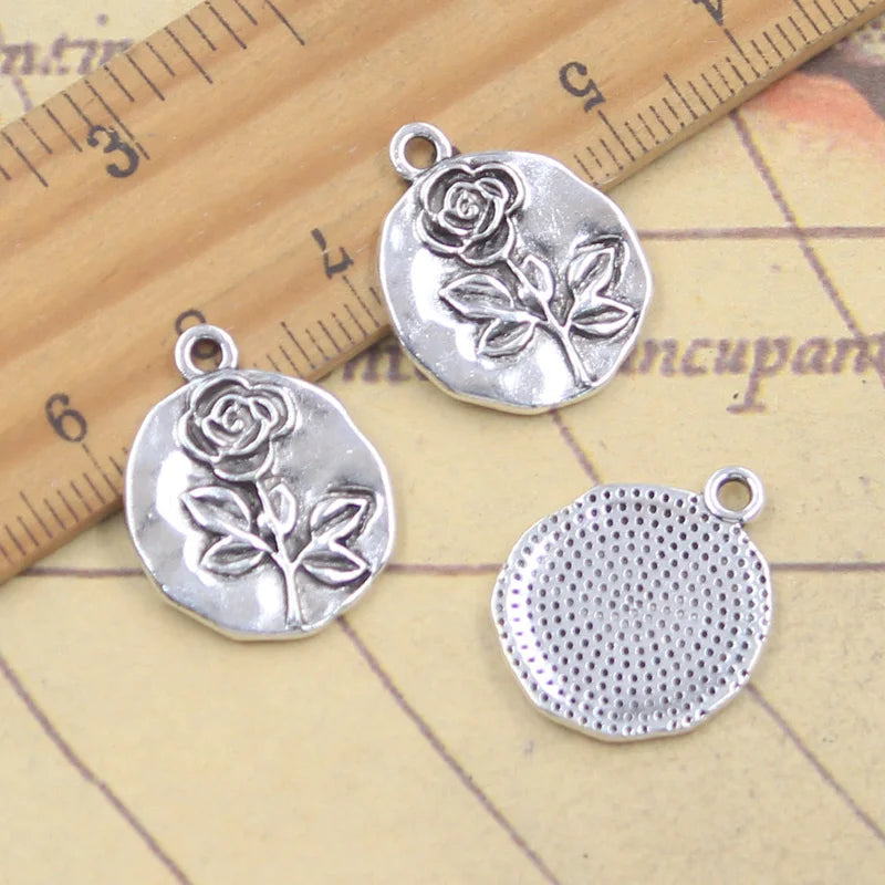 10 Uds. De dijes de flor rosa de 21x17mm, colgantes de Color plata antigua, fabricación de joyería tibetana hecha a mano DIY