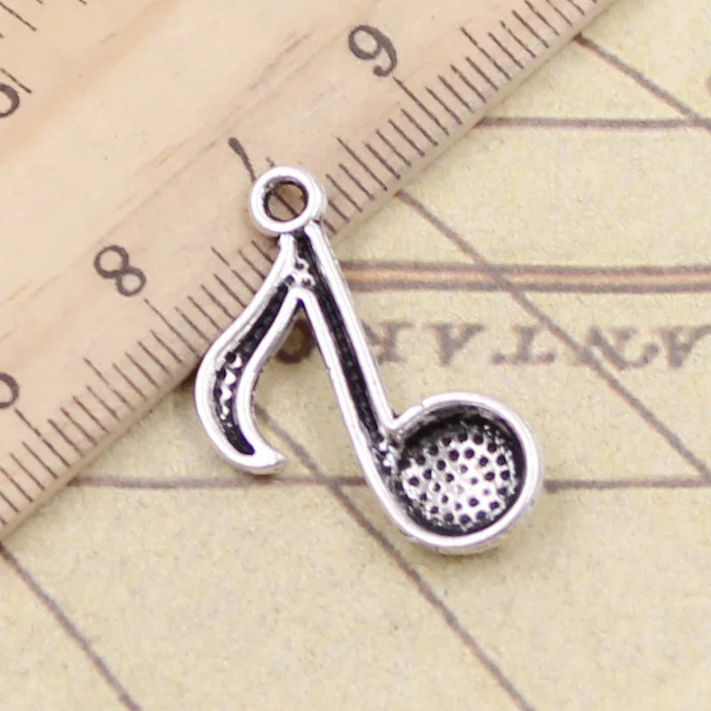 10 Uds. De dijes de notas musicales de 22x17mm, colgantes de Color plata tibetana, fabricación de joyería antigua, artesanía hecha a mano DIY