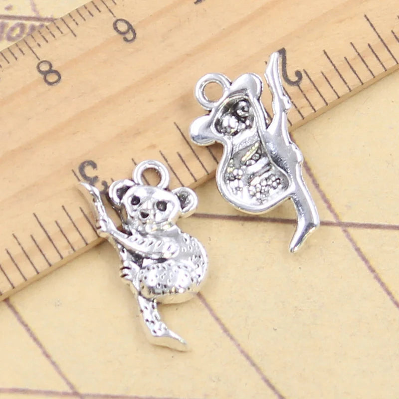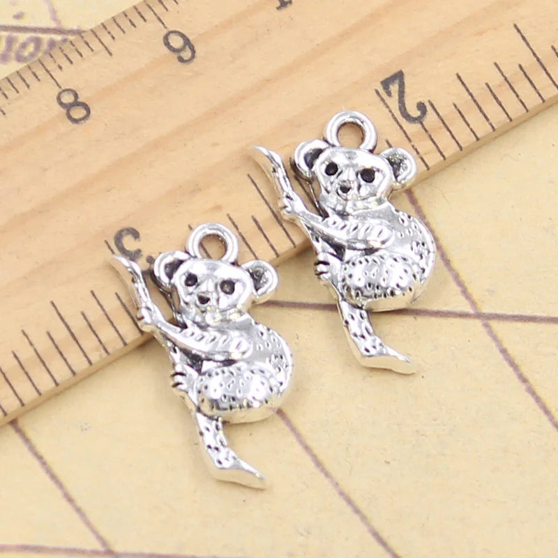10 Uds. Colgantes de oso Koala, 22x12mm, colgantes de Color plata antigua, fabricación artesanal, joyería tibetana hecha a mano