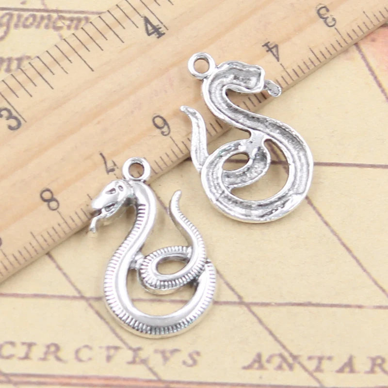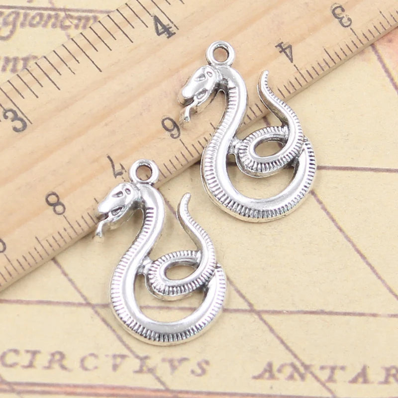 10 Uds. De dijes de serpiente de 27x17mm, colgantes de Color plata tibetana, fabricación de joyería antigua, artesanía hecha a mano DIY