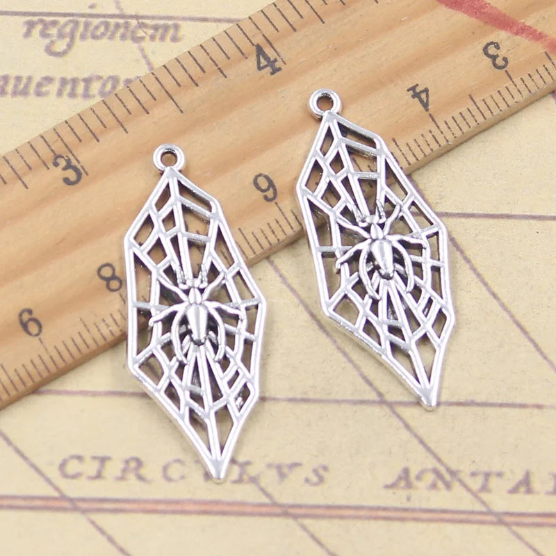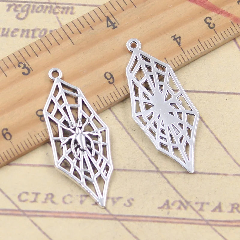 10 Uds. De dijes de telaraña de Halloween, 38x15mm, colgantes de Color plata antigua, fabricación tibetana, joyería artesanal hecha a mano DIY