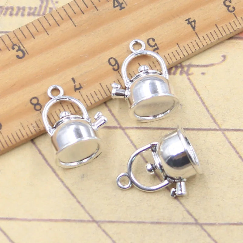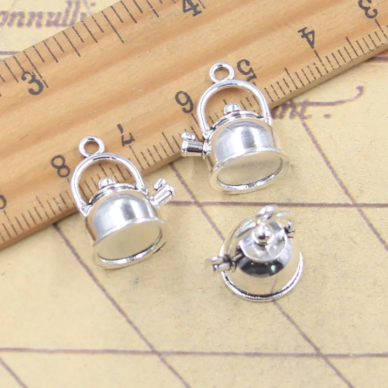 10 Uds. De dijes de tetera 3D, tetera de 18x14x12mm, colgantes de Color plata antigua, fabricación de joyería tibetana hecha a mano DIY
