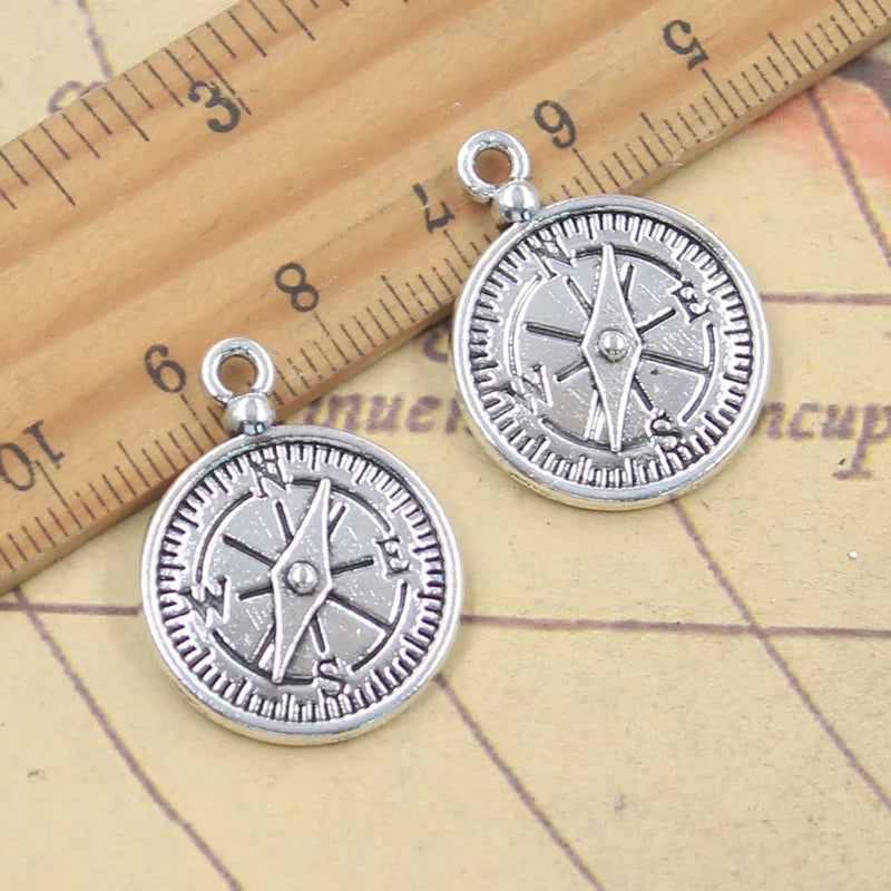 10 Uds. De dijes, guía de brújula, 27x20mm, colgantes de Color plata antigua, fabricación de joyería tibetana hecha a mano DIY