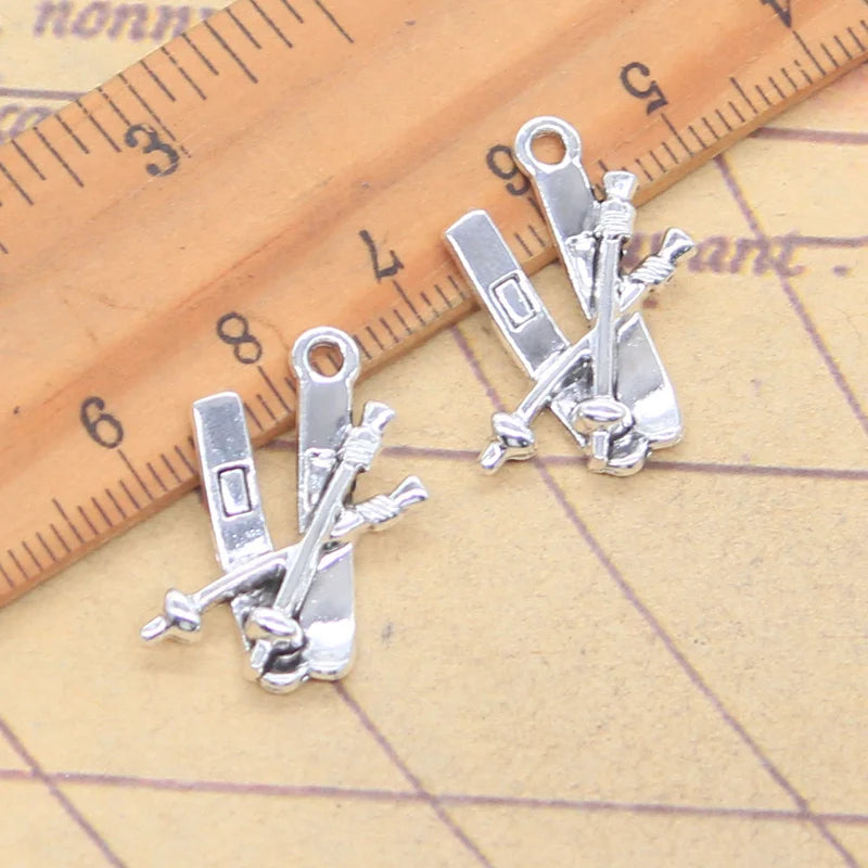 10 Uds. De dijes para esquí, Snowboard, 23x20mm, colgantes de Color plata antigua, fabricación de joyería tibetana hecha a mano DIY