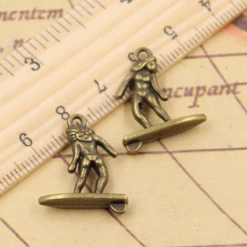 10 Uds. De dijes para mujer, surfista, 21x18mm, colgantes de Color bronce tibetano y plata, fabricación de joyería antigua, artesanía hecha a mano DIY