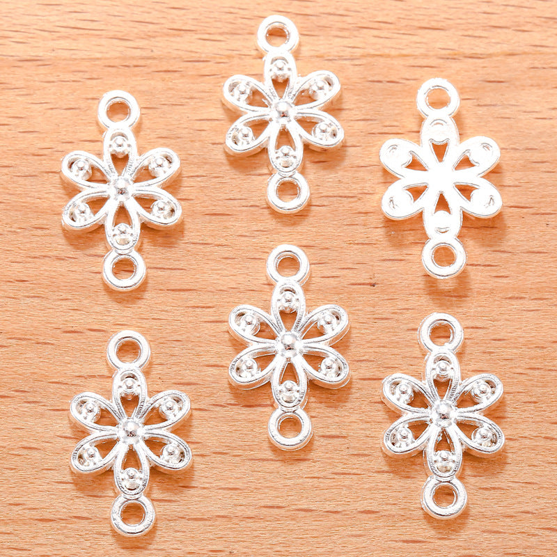 100 x Tibetan Silver Tone Flower Connector Charms for Bracelet Jewellery Making Q1155