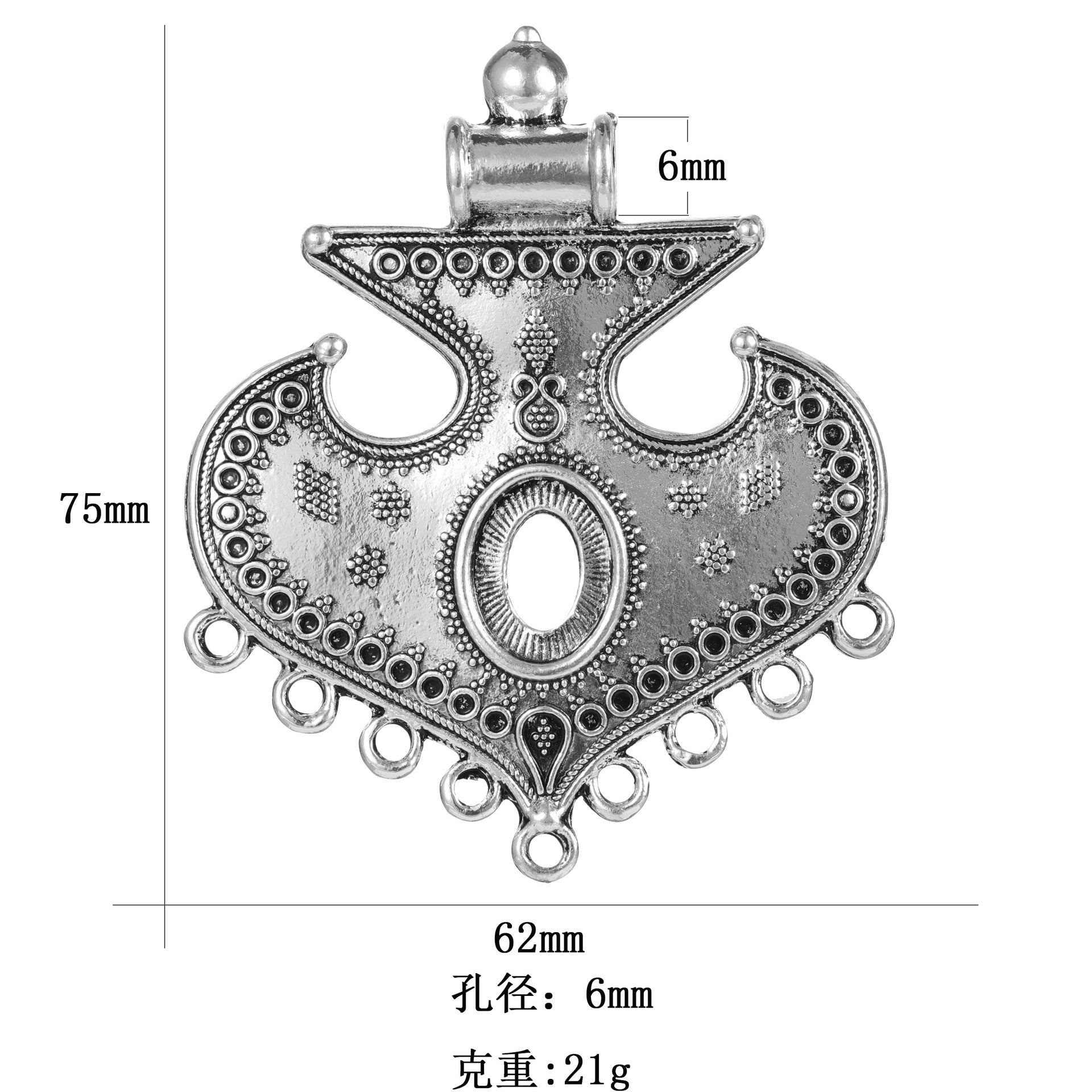 1pc Tibetan Silver Vintage Zinc Alloy Antique Silver Pendant Accessory Ethnic Siberian Style Ornament Pendant