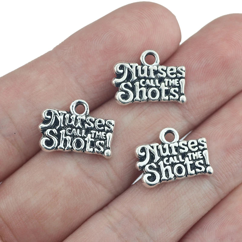 10 Pieces 12*16mm Antique Silver Plated Nurses Call THE Shots Charms Letters DIY Message Pendant Necklaces Jewelry Supplies