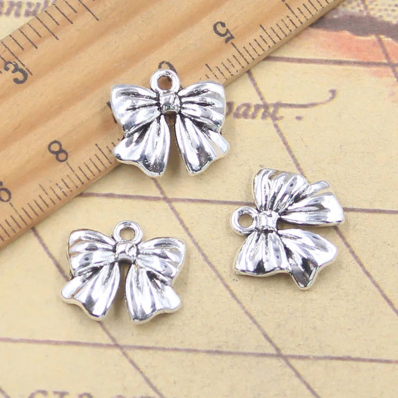 10 Uds. De dijes con lazo, cinta de 16x17mm, colgantes de Color plata antigua, fabricación de joyería tibetana hecha a mano DIY