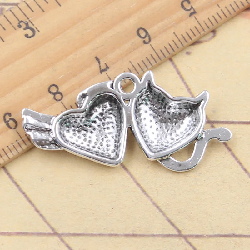 10 Uds. De dijes de Ángel, demonio, corazón, 20x39mm, colgantes de Color plata tibetana, fabricación de joyería antigua, artesanía hecha a mano DIY