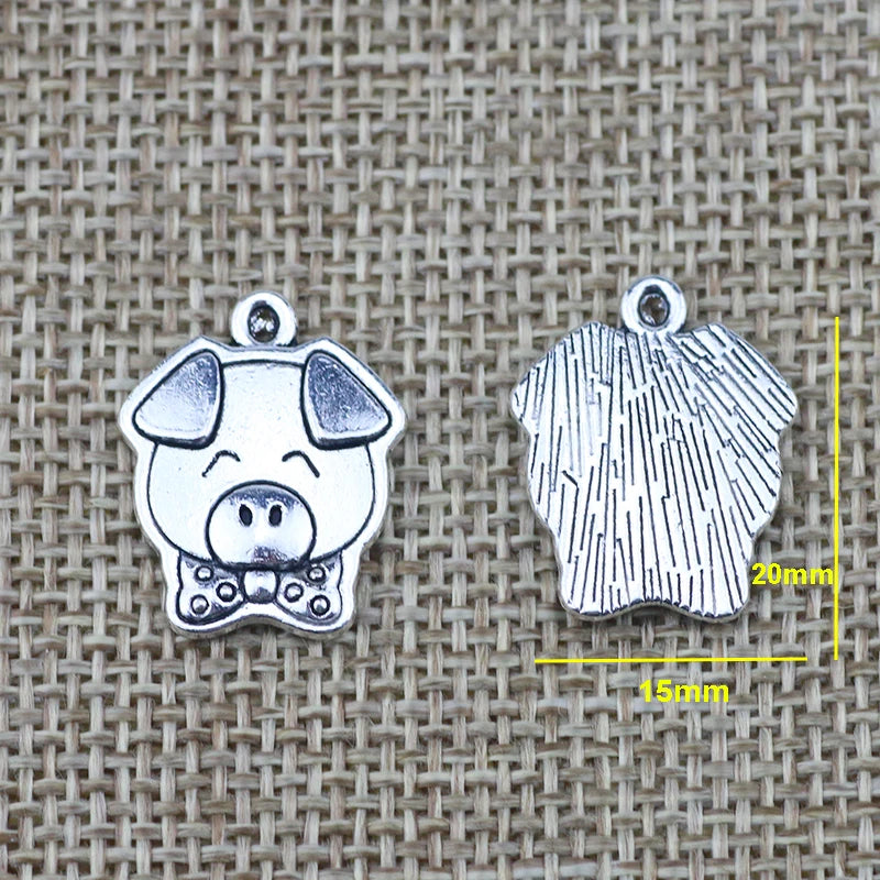 10Pcs 15*20mm Antique Silver Plated Lovely Pig Charm Small Animal Pendant For DIY Jewelry Making Findings