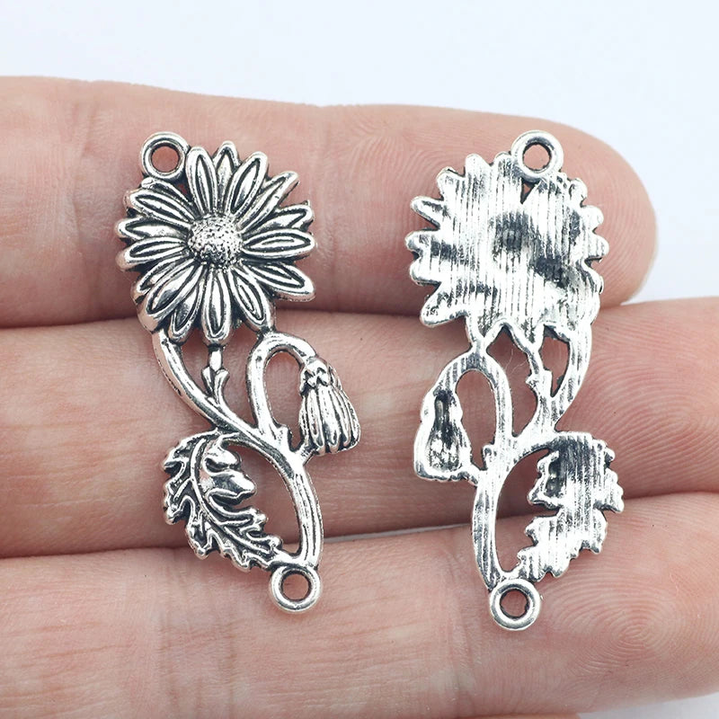 10Pcs 15*38mm Antique Silver Plated Sunflower Charms For DIY Jewelry Making
