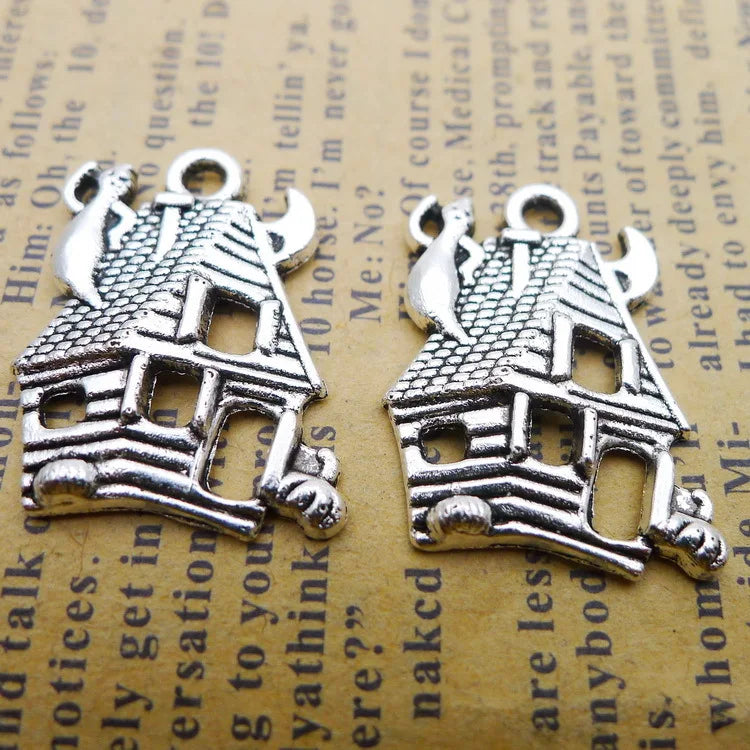 10Pcs 18*23mm Antique Silver Plated Alloy Hollow Castle Wicca Charms Necklace Accessories Charms For Diy Jewelry Making Findings