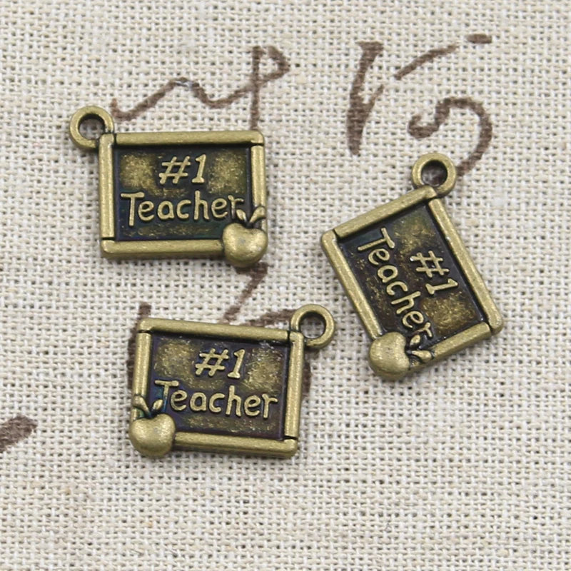 10pcs Charms #1 Teacher Apple 17x14mm Antique Silver Color Plated Pendants Making DIY Handmade Tibetan Finding Jewelry
