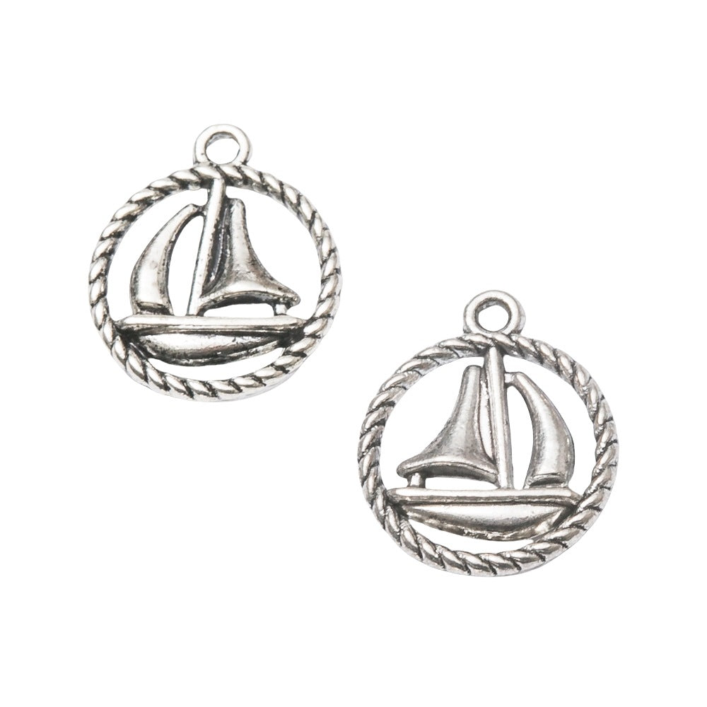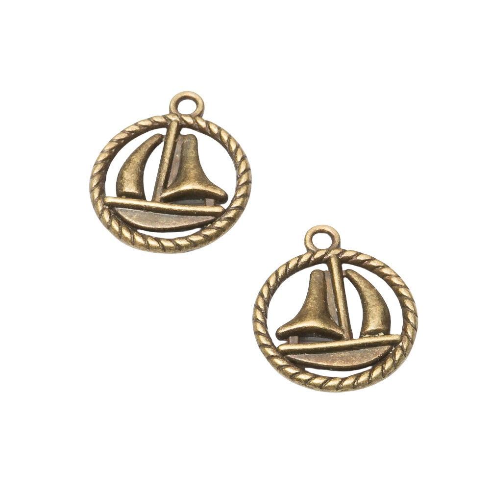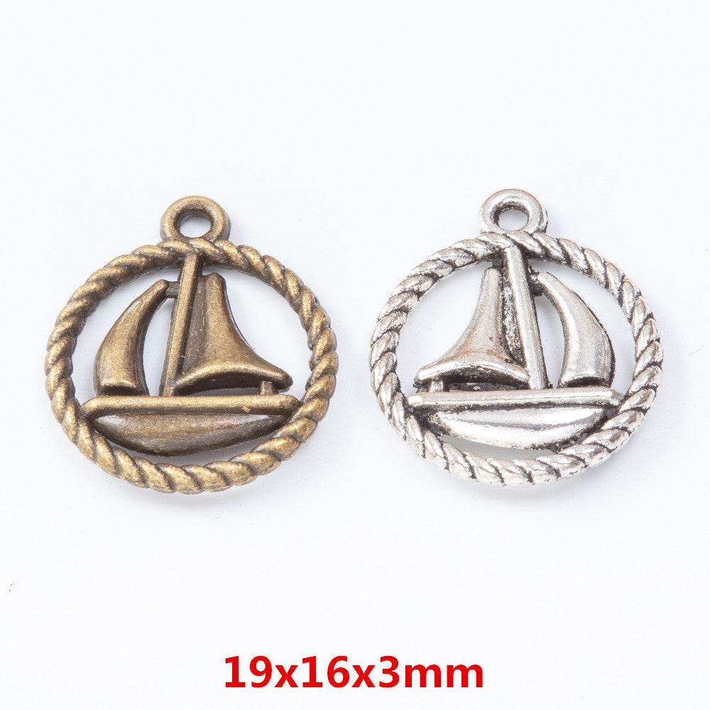 10pcs 19*16mm dark silver color 2sided round rim sailing boat design charms EF2872