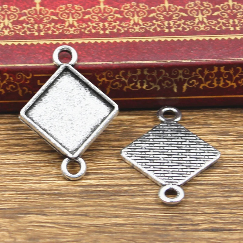 10pcs Fit 15mm Square Rhombus Double Hanging Glass Cabochon Base Setting Antique Bronze Silver Color Color Pendant DIY Making