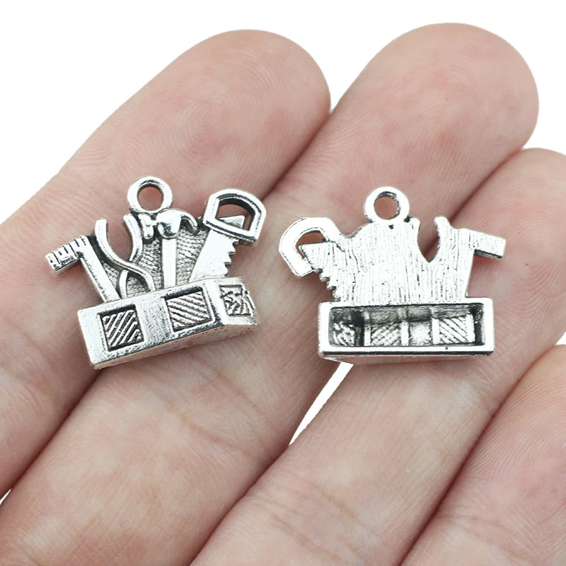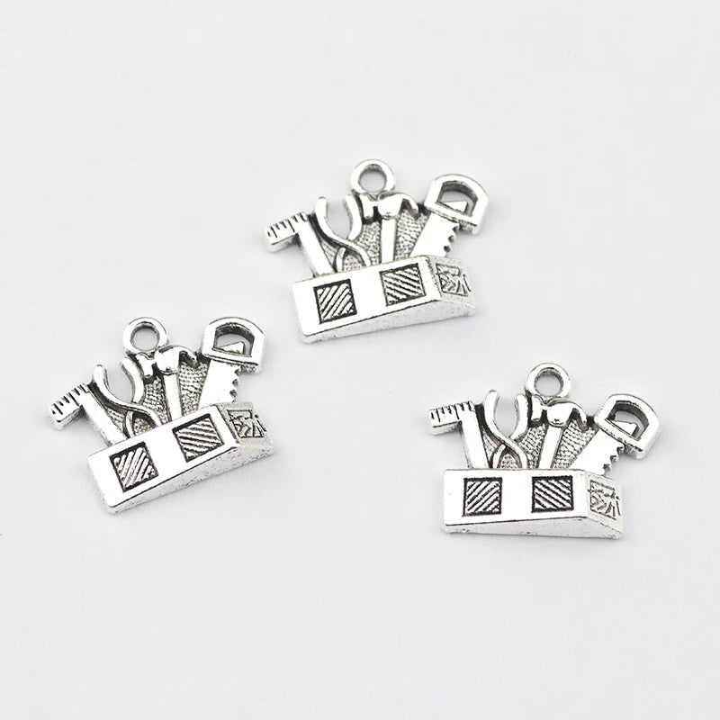 10pcs/lot 17*22mm Antique Silver Color Tool Hammer Saw Container Charm Pendant For DIY Necklace Bracelet Jewelry Accessories