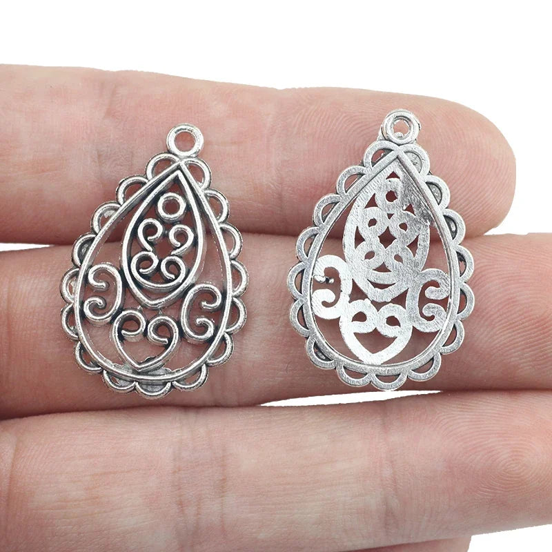 10pcs/lot 20*30mm Metal Alloy Antique Silver Color DIY Waterdrop Charm Pendant For Necklace Bracelet Jewelry Making