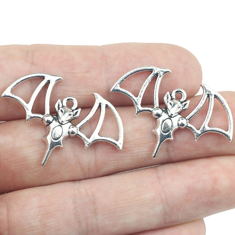 10pcs/lot 23*33mm Hollow Out Bat Charm Antique Silver Color DIY Holloween Neckalce Bracelet Jewelry Finding