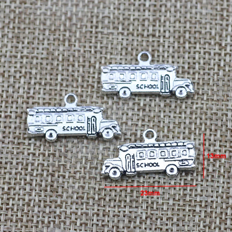 10Pieces 13*23mm Mixed Alloy Antique Silver Color School Bus Charms Keychain Pendant Accessory For DIY Jewelry Making
