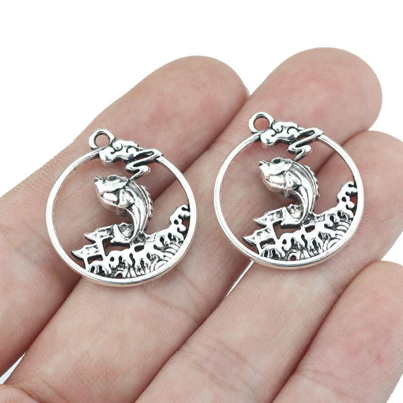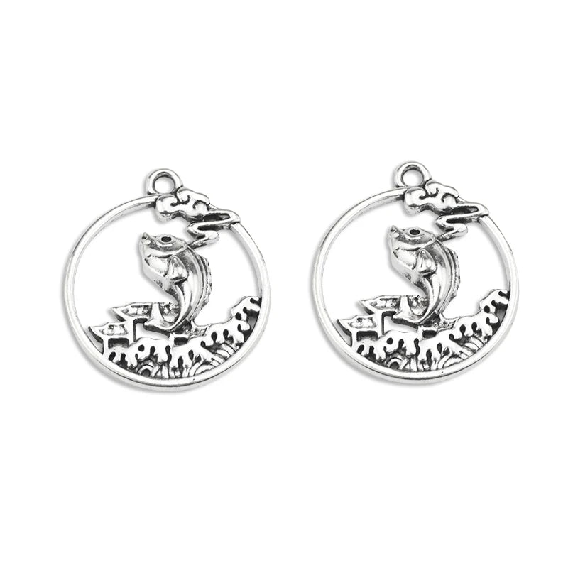 10Pieces 22*25mm Round Hollow Wave Fish Charm Cute Earring Pendant Bracelet Necklace Accessories DIY Craft Finding