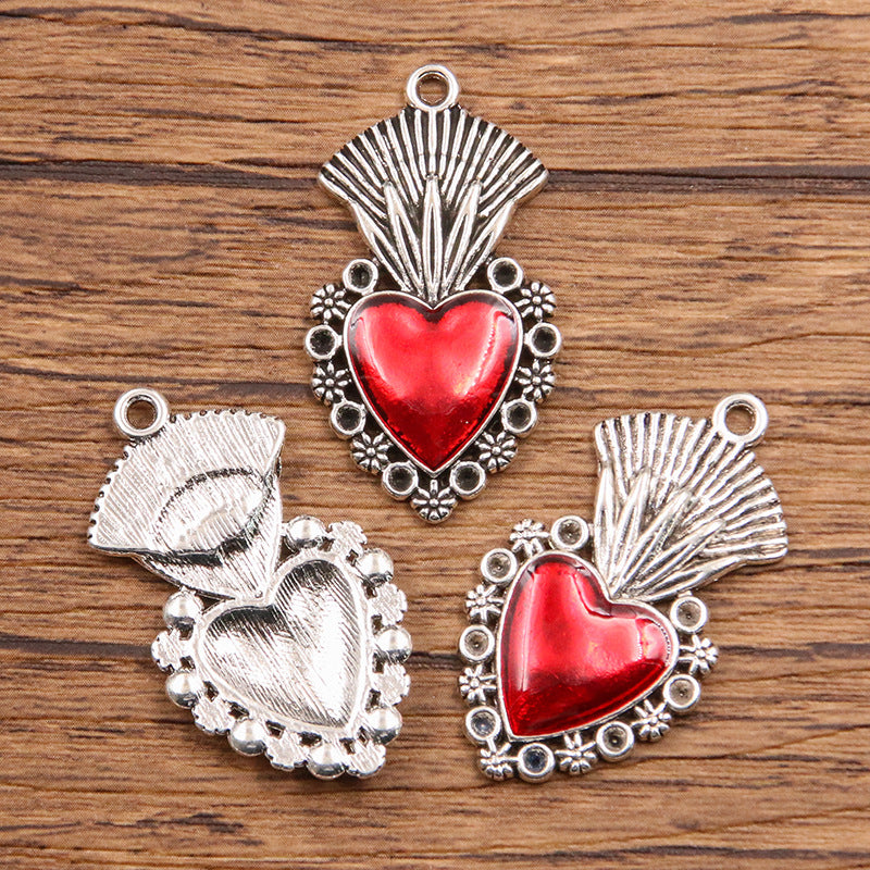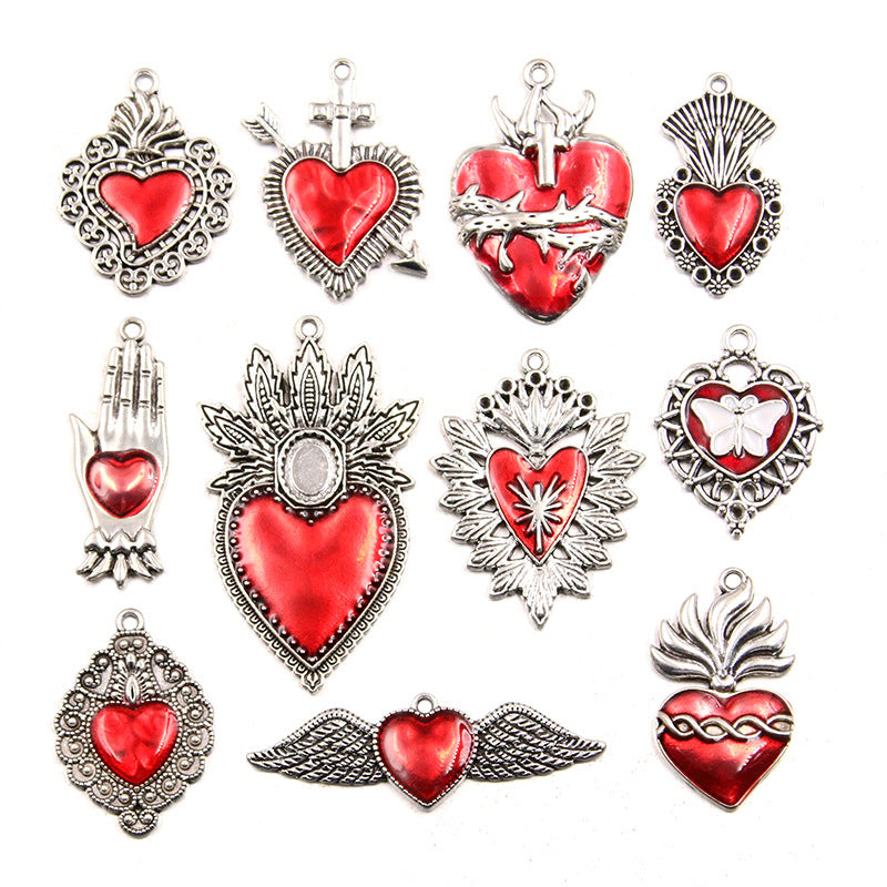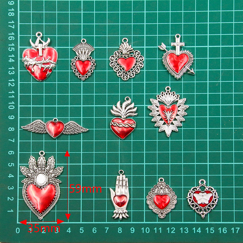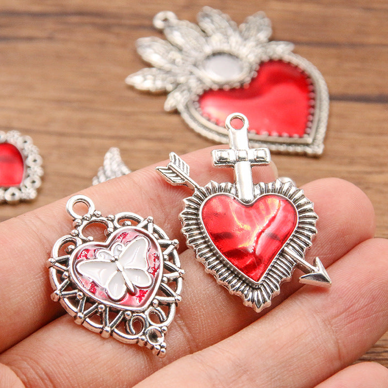 11 European and American cross-border personality retro gothic peach heart wings alloy earrings necklace jewellery accessories