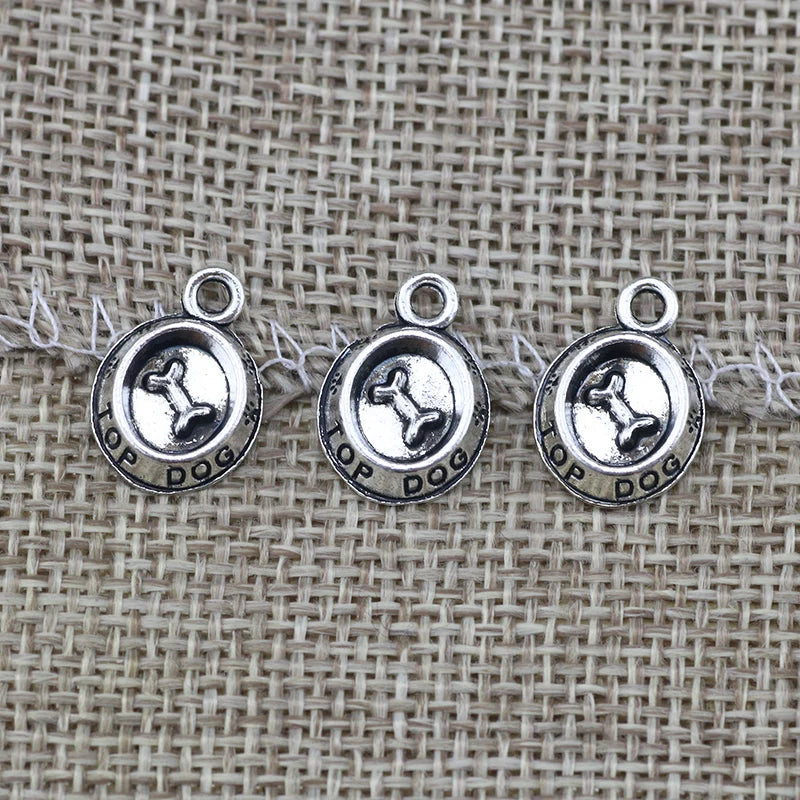 12 Pieces 15*11mm Hight Quality Alloy Antique Silver Color Dog Bone Bowl Charms For DIY Pet Jewelry Making