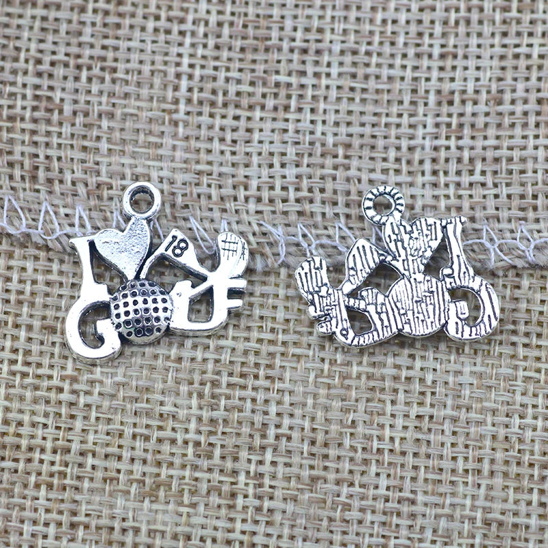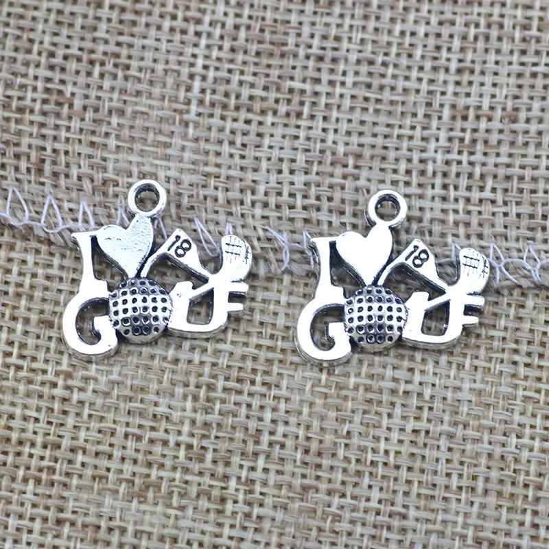 12Pcs 16*20mm Antique Silver Plated Alloy I Love Golf Words Charms Necklace Pendant Accessories Charms For Diy Jewelry Making