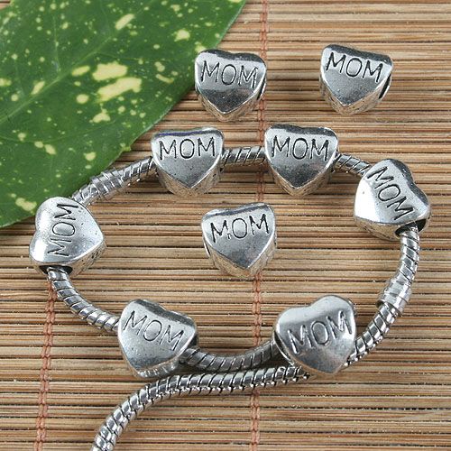 description: antiqued silver two sides MOM heart spacer beads G1303