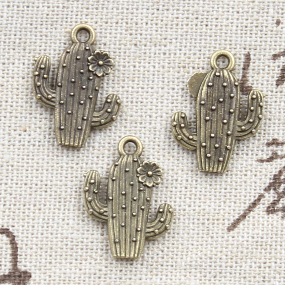 12pcs Charms Desert Cactus Flower 20x15mm Antique Bronze Silver Color Plated Pendant Making DIY Handmade Tibetan Finding Jewelry