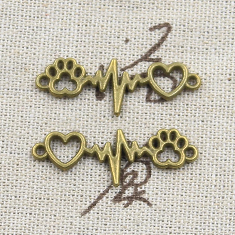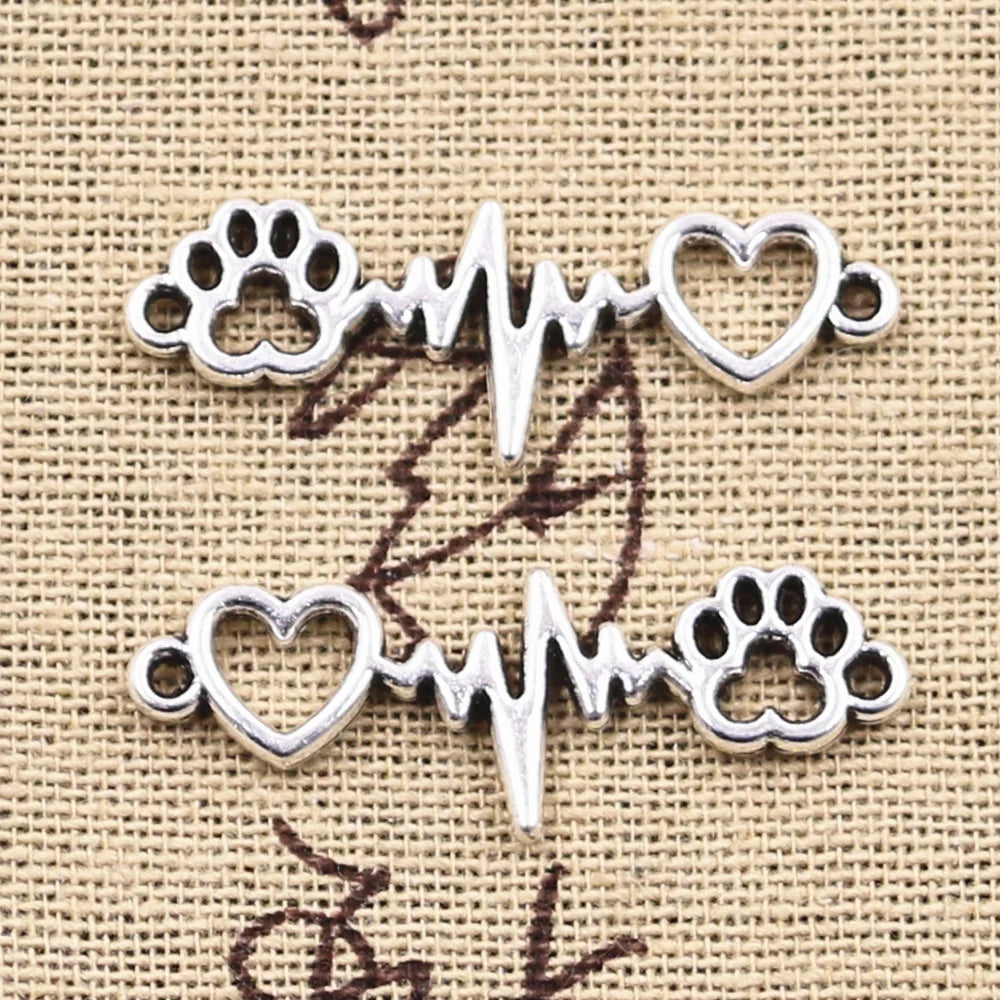 12pcs Charms ECG Heartbeat Connector Heart Dog Claw Link 12x34mm Antique Silver Color Pendant Making DIY Tibetan Finding Jewelry