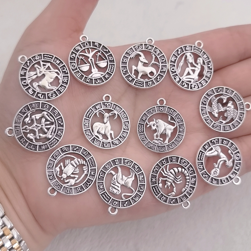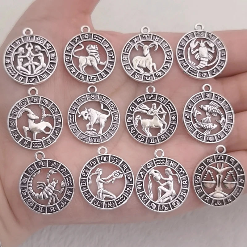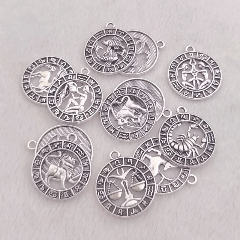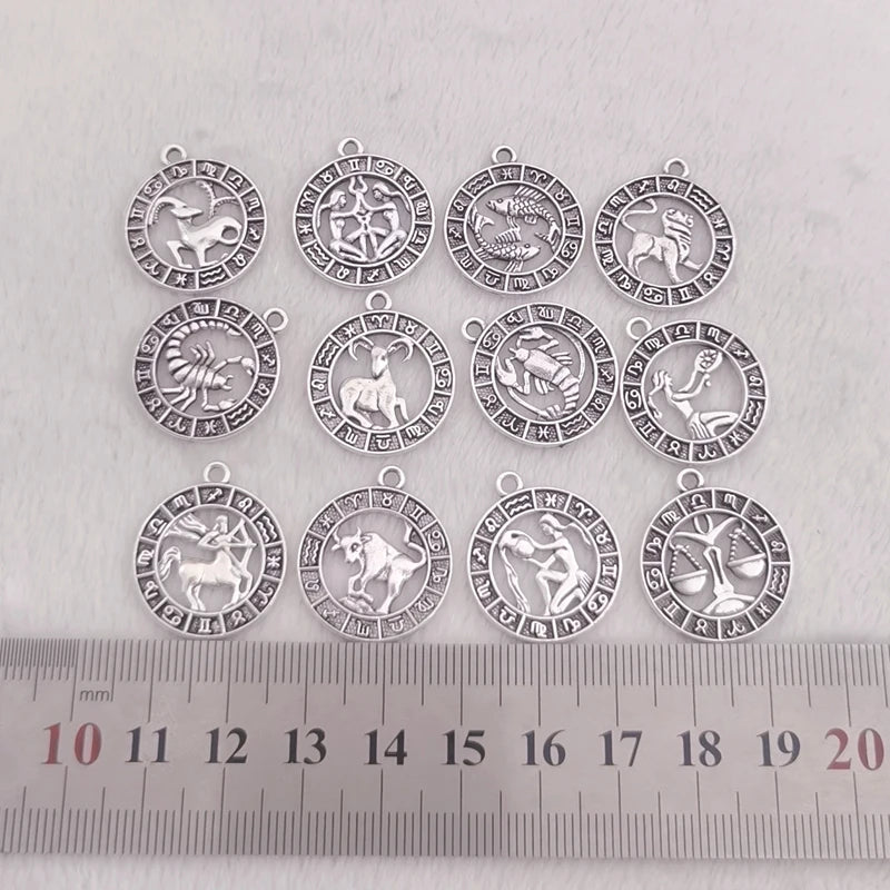 12pcs Twelve Constellations Aries Taurus Gemini Cancer Leo Virgo Pendant Earrings Necklace For DIY Jewelry Making Accessorie