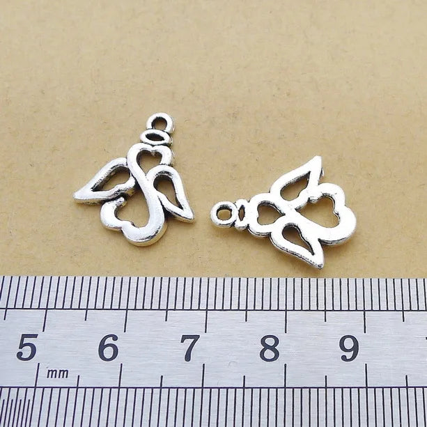 12Pieces/lot 17x20mm Small Alloy Angel Charm Antique Silver Color Heart Charms Wings of Liberty Jewelry Making Craft Pendant