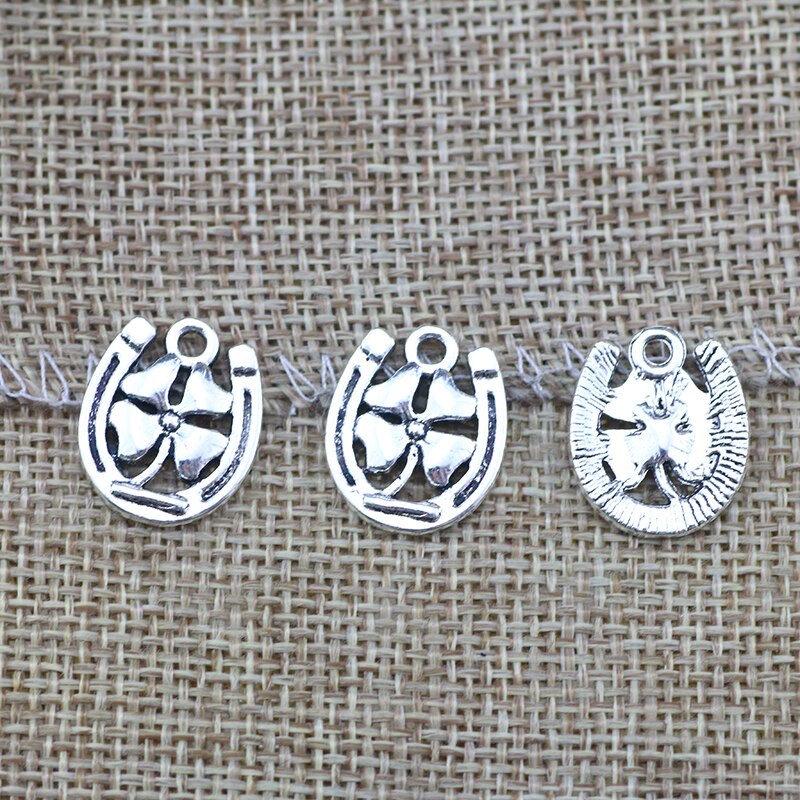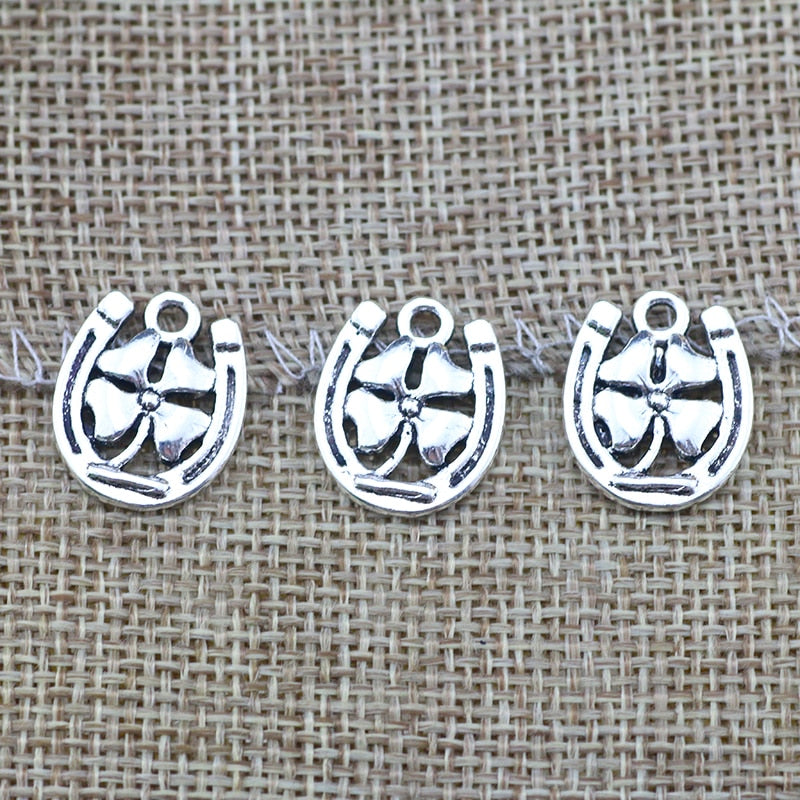 15 Pieces 15x18mm Antique Silver Color Flower Lucky Charms Keychains Bracelet For DIY Jewelry Making