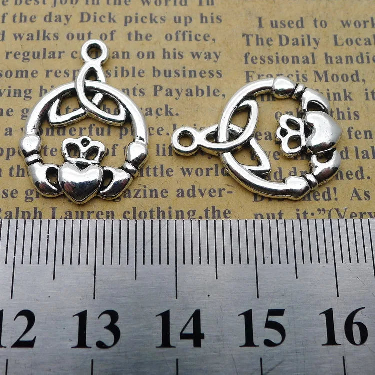 15Pcs 17*23mm Antique Silver Plated Hollow Love Rings Charms