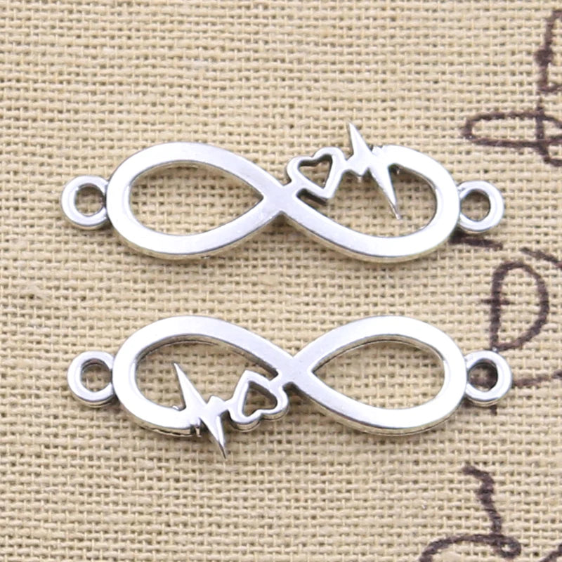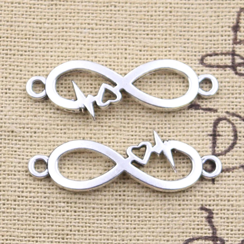 15pcs Charms ECG Heartbeat Heart Intifinty Link 11x33mm Antique Silver Color Pendant Making DIY Handmade Tibetan Finding Jewelry