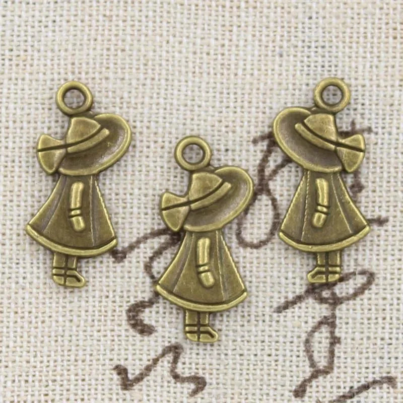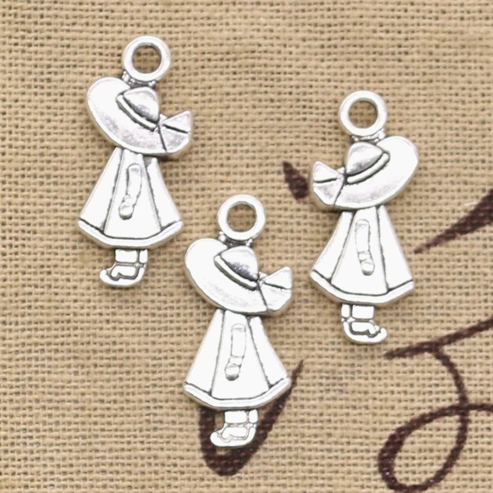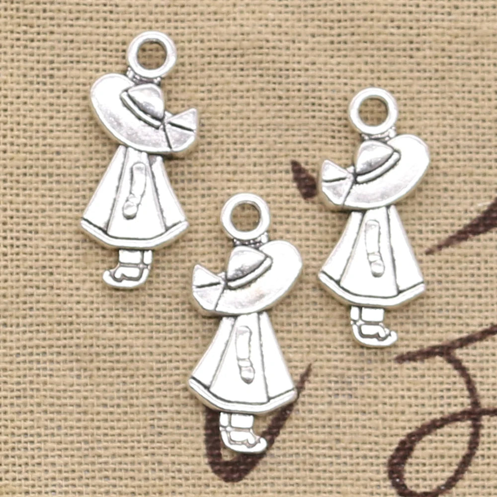 15pcs Charms Girl With Hat 12x24mm Antique Silver Color Pendants Making DIY Handmade Tibetan Finding Jewelry