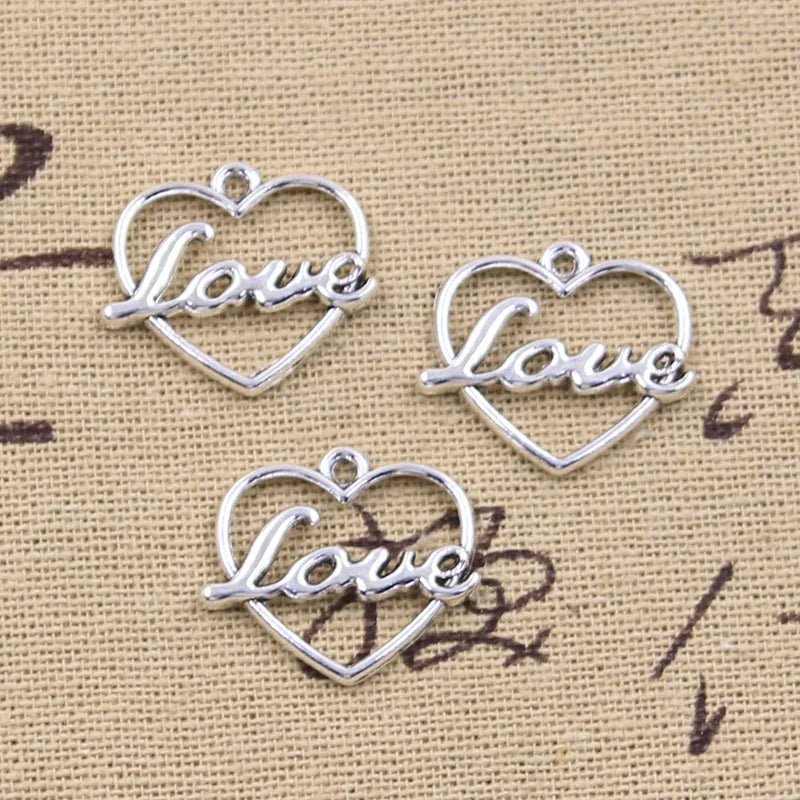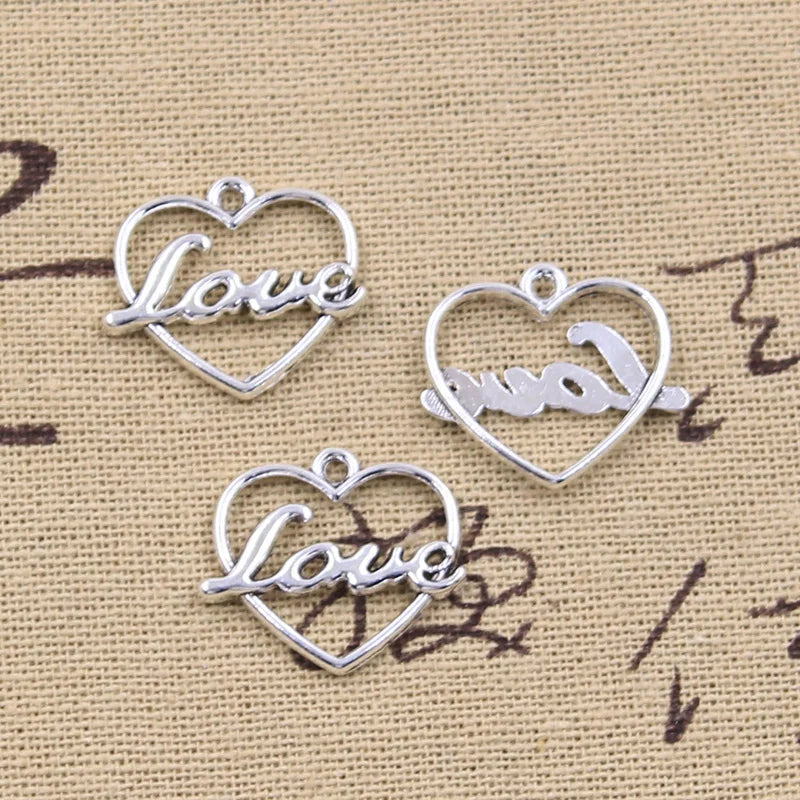 15pcs Charms Heart Love 19x20mm Antique Silver Color Pendants Making DIY Handmade Tibetan Finding Jewelry