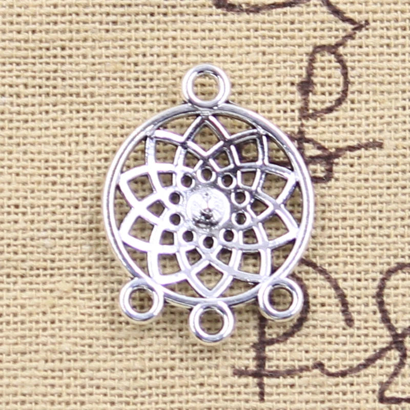 15pcs Charms Native Dream Catcher Chandelier Connector 24x18mm Antique Silver Color Pendants Making DIY Tibetan Finding Jewelry