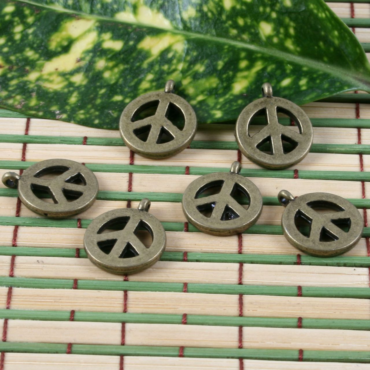 description: antiqued bronze peace sign design pendant charm G1393