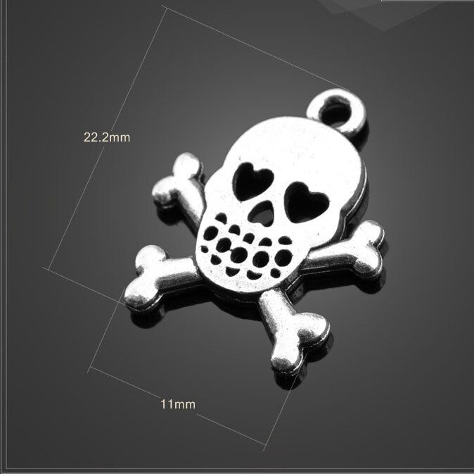 20 PCS/Lot 11mm*22.2mm sharma metal diy handmade accessories antique silver plated skull and bone charms