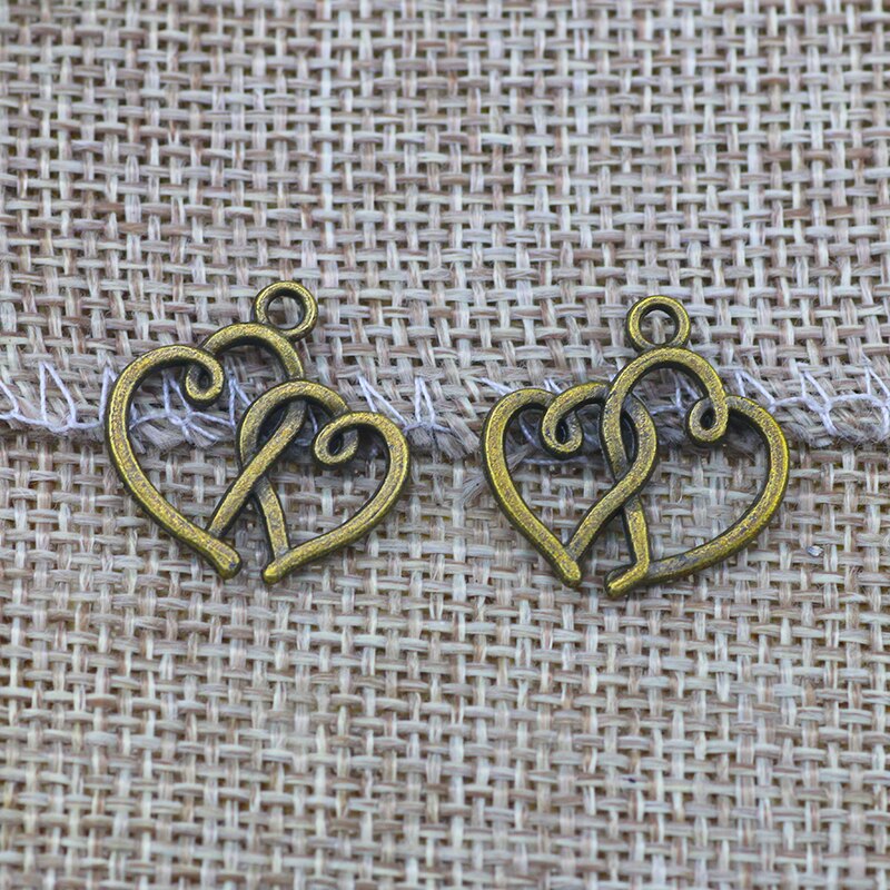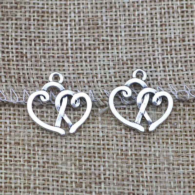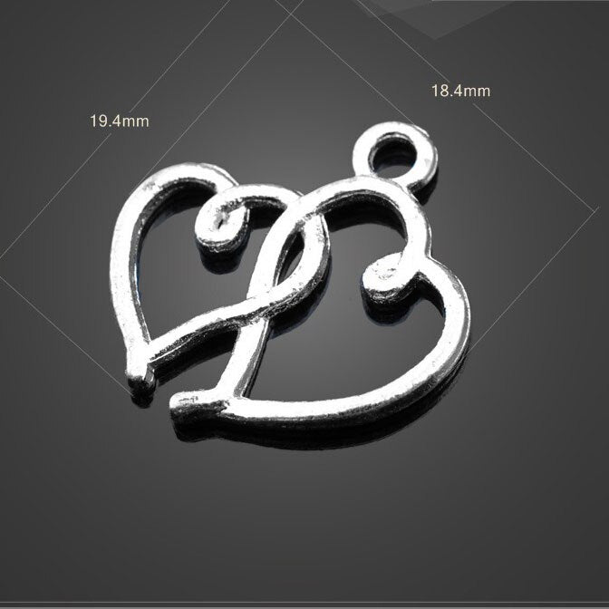 20 PCS/Lot 18.4mm*19.4mm antique silver plated diy handmade hollow out double heart charms pendants