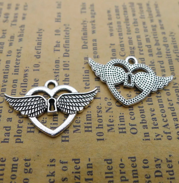 20 Pieces 16*25mm Antique Silver Color Pretty Heart Wings Charms Necklace Earrings Pendant Charms For Jewelry Making Findings